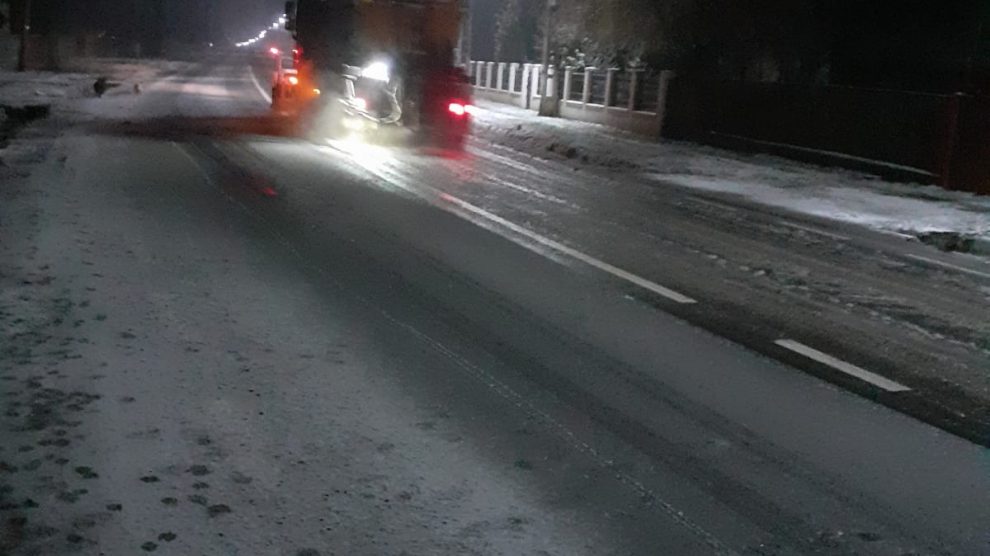 E iarnă în toată regula în județ, unde ninge iar vântul suflă cu putere. Drumarii au ieșit pe șosele și au împrăștiat sute de tone de material antiderapant. Până la ora postării acestei știri, nu au fost semnalate probleme de trafic, însă polițiștii recomandă șoferilor prudență maximă.