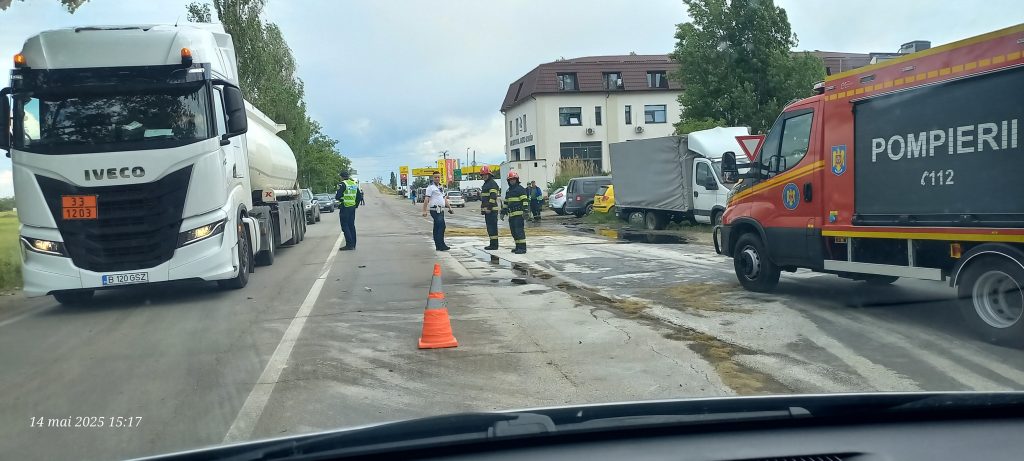 „Centrul INFOTRAFIC din Inspectoratul General al Poliției Române informează că pe DN 2B, la ieșire din municipiul Buzău, județul Buzău, a avut loc o coliziune între un autotren și un autoturism. Din primele date, nu sunt persoane rănite. La fața locului sunt semnalate scurgeri de combustibil din rezervorul autotrenului pe partea carosabilă, iar circulația rutieră a fost oprită pe ambele sensuri de deplasare, pentru siguranța participanților la trafic”