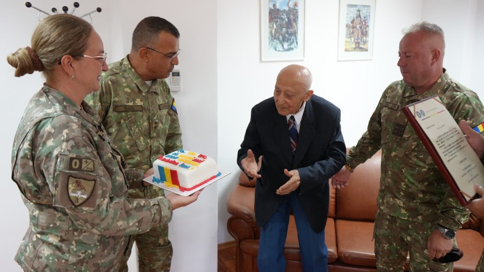 ”Veteranul celui de-Al Doilea Război Mondial, Ion Bănică, a fost sărbătorit astăzi, 20 august, de militarii comandamentului Diviziei 2 Infanterie „Getica”, la împlinirea vârstei de 103 ani. La eveniment au participat și reprezentanți ai Direcției calitatea vieții personalului”.