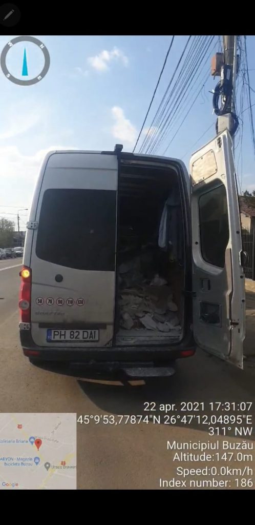 ”Mijlocul de transport încărcat cu deșeuri inerte amestecate rezultate din lucrări de construcții/demolări, aparținând unei persoane fizice a fost oprită în trafic de reprezentanții Inspectoratului Județean de Poliție Buzău. Echipa de comisari ai Gărzii Naționale de Mediu – Comisariatul Județean Buzău, în urma verificărilor efectuate în conformitate cu prevederile legislației specifice privind regimul deșeurilor cât și transportul deșeurilor periculoase și nepericuloase pe teritoriul României, Legea 211/2011 și HG 1061/2008, au dispus sancționarea contravențională în valoare de 30.000 lei și aplicarea sancțiunii contravenționale complementare de confiscare a mijlocului de transport. Deșeurile au fost predate unui operator autorizat în vederea eliminării/valorificării acestora.