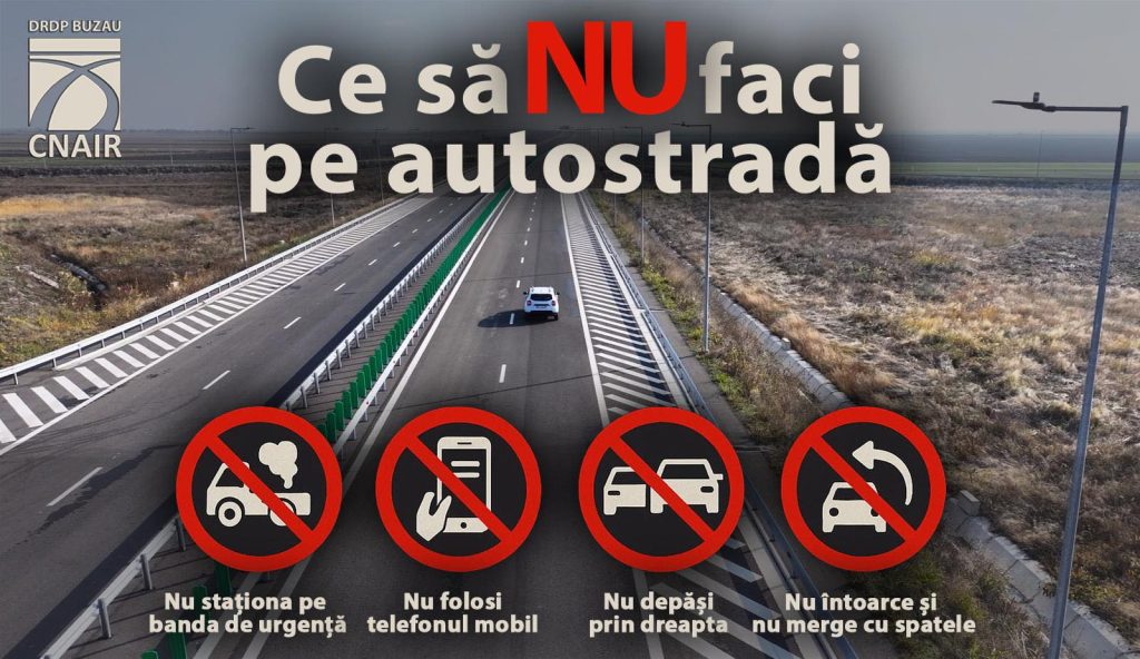 – Nu întoarceți și nu circulați cu spatele pe autostradă! Aceste manevre sunt interzise și extrem de periculoase. Dacă ați ratat ieșirea, continuați până la următoarea. Întoarcerea sau mersul cu spatele pot provoca accidente grave, cu consecințe dramatice.