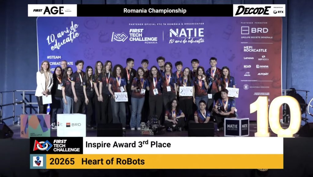 Succesul de la etapa națională a fost total. Alături de partenerii din alianță, buzoienii de la Heart of RoBots au câștigat marea finală, stabilind de două ori un nou record mondial chiar în timpul meciurilor decisive. Pe lângă titlul de campioni, echipa a obținut și Inspire Award (locul 3), cel mai râvnit premiu, care atestă excelența în design, inovație și spirit de echipă.