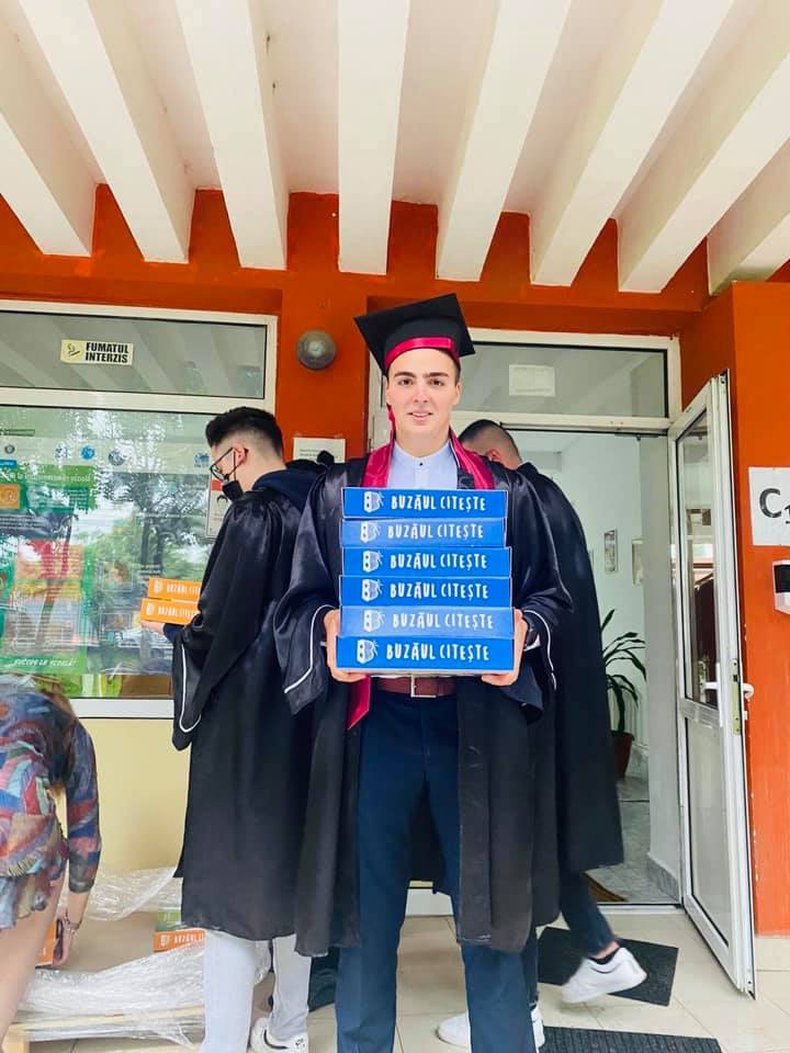 Pe final de an școlar, elevii din municipiul Buzău primesc gratuit cărți pe care să le citească în vacanța de vară. Programul “Buzăul citește”, un proiect ambițios implementat de autoritățile locale cu scopul de a stimula lectura în rândul elevilor, a debutat în municipiu. Primele pachete cu cărți au fost înmânate tinerilor care au participat joi, 3 iunie, la festivitatea de absolvire a liceului. Printre primii liceeni care au beneficiat de cărțile atent selectate de experți și oferite în cadrul programului “Buzăul citește” s-au aflat cei de la Colegiul Mihai Eminescu.