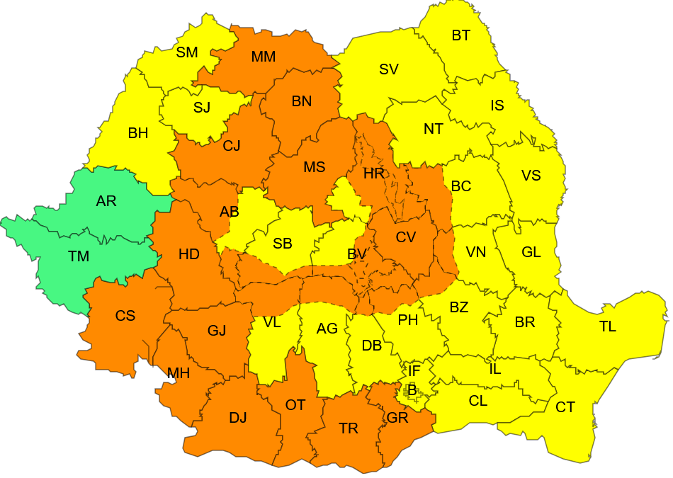 Pentru început, la ora 12:00 intră în vigoare codul galben, valabil până la ora 21:00.