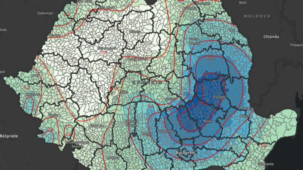 Ministerul Dezvoltării a publicat prima hartă de risc seismic a României. Harta este una interactivă. Pe de o parte îi ajută pe oameni să afle ce risc seismic există în zona în care locuiesc, iar pe de altă parte ajută autoritățile să acceseze fonduri pentru consolidări. Potrivit hărții, cel mai mare risc există în zona seismică Vrancea. Harta cuprinde inclusiv un tabel cu localitățile unde accelerația terenului este cea mai mare, de cel puțin 0,15 g. Practic, este vorba despre zona epicentrală sau din apropiere, care este delimitată din zona Adjud, Vrancea, include orașele Mărășești, Focșani, Rm. Sărat, Buzău și Mizil, până la Ploiești.