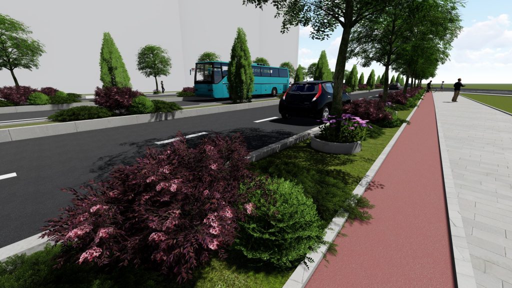 ”Pe tronsonul studiat din Bulevardul Industriei (tronson delimitat de sensul giratoriu de la intersecția cu Șoseaua Spătarului și piciorul rampei pasajului peste calea ferată Buzău-Braila) în lungime de 2.700 m se propune realizarea a câte unei benzi de circulație pe fiecare direcție de mers dedicate exclusiv mijloacelor de transport public (lățimea benzii fiind de 3,50 m) amplasate pe partea marginală a bulevardului. Totodată sunt prevăzute lucrări de reabilitare a trotuarelor existente cât și înființarea de piste dedicate exclusiv bicicliștilor. Astfel, pe tronsonul cuprins între intersecția cu șoseaua Spatarului și până în dreptul accesului în incinta societății comerciale Constam, pe fiecare direcție de circulație se va realiza câte un trotuar cu lățimea de 1,50 –5,00 m și câte o bandă pentru biciclete cu lățimea de 1,40, iar pe tronsonul cuprins între accesul în incinta societații comerciale Constam și km 2+400, se va realiza un trotuar cu lățimea de 2,00 m și o pistă dublă de biciclete cu lățimea de 3,00”, se arată în proiect.
