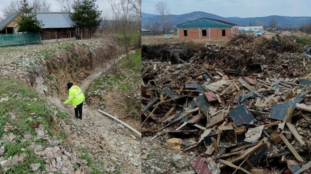 Potrivit informării oficiale, pe teren a fost identificată o clădire în curs de execuție, realizată de un operator economic cu punct de lucru în localitate, iar în apropierea acesteia, comisarii au constatat „urme de beton atât pe mal, cât și în pârâul aflat în apropierea clădirii în curs de execuție”, situație care contravine legislației privind gestionarea deșeurilor.
