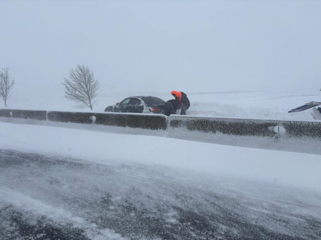 Deși, încă de la ora 07.00, s‑a anunțat pe toate canalele oficiale, că DN 22 este închis circulației publice, încă sunt șoferi care se aventurează pe acest tronson și, inevitabil, rămân blocați în nămeți.
