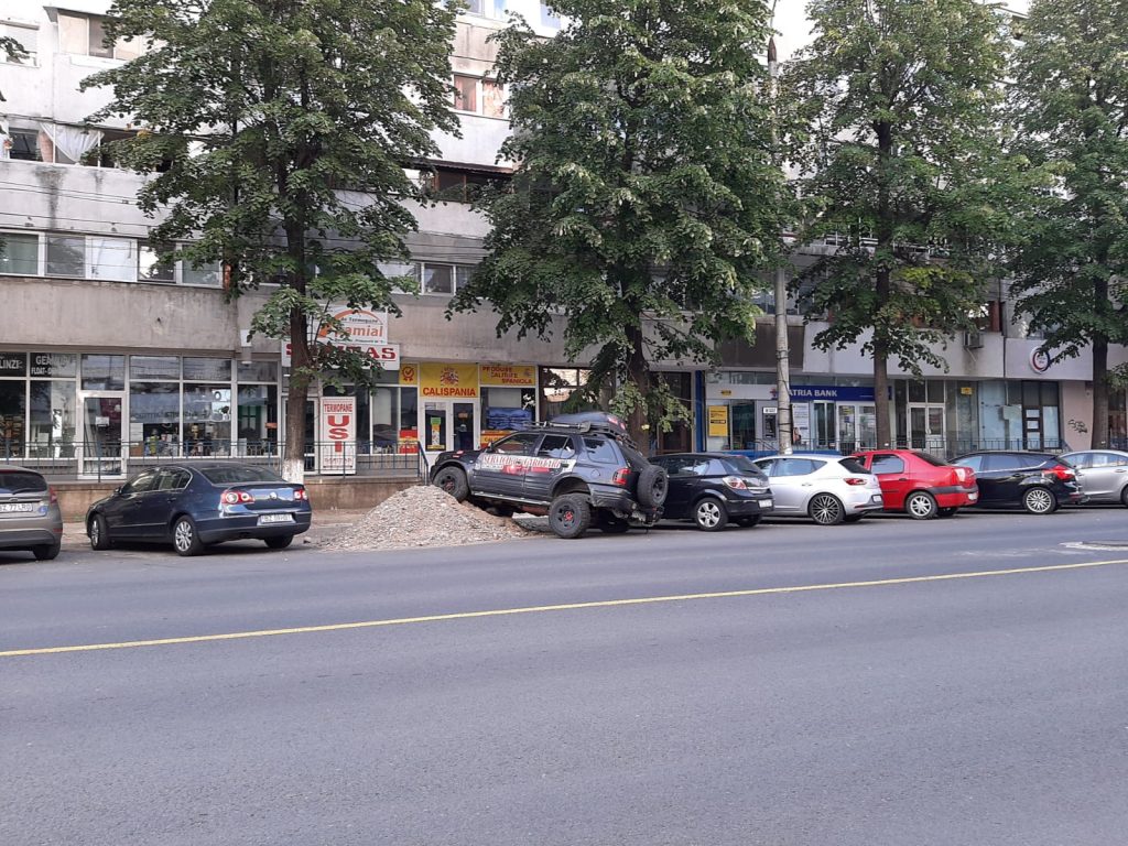 Imagini trimise de un cititor redacției Șansa News.ro arată că deși încă este permisă parcarea pe bulevardul Unirii, locurile sunt insuficiente. Muncitorii care intervin pentru reabilitarea trotuarelor au ocupat unul dintre locurile de parcare existente cu o grămadă de nisip. În lipsa unui loc unde să își lase SUV-ul, șoferul unei mașini de teren și-a urcat vehiculul chiar peste nisip.