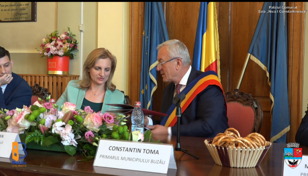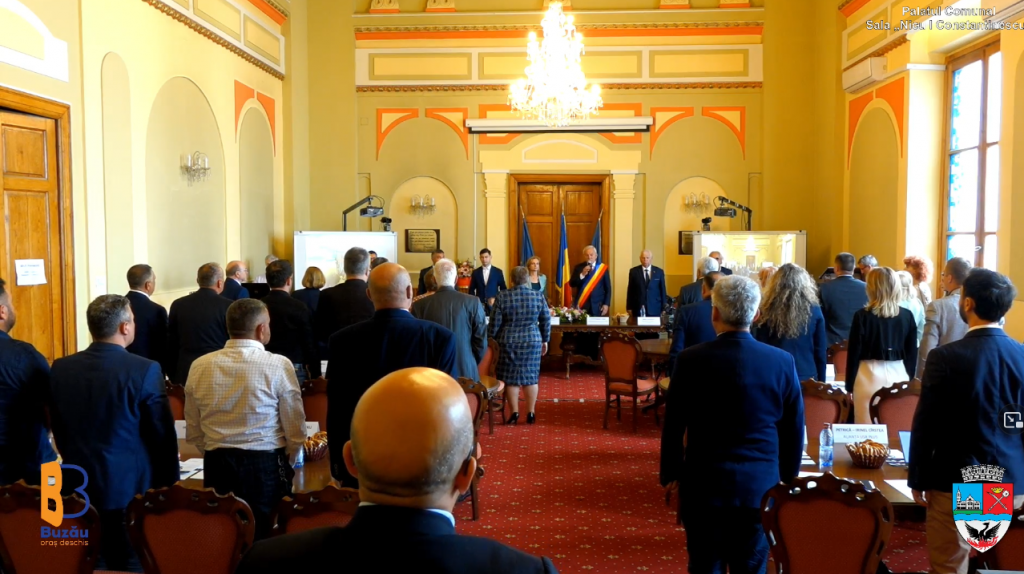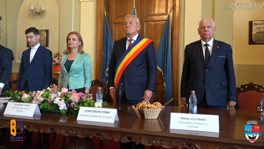 Ședința Consiliului Local Municipal Buzău, la care au participat delegații din fiecare oraș, a debutat cu intonarea imnului celor două țări.