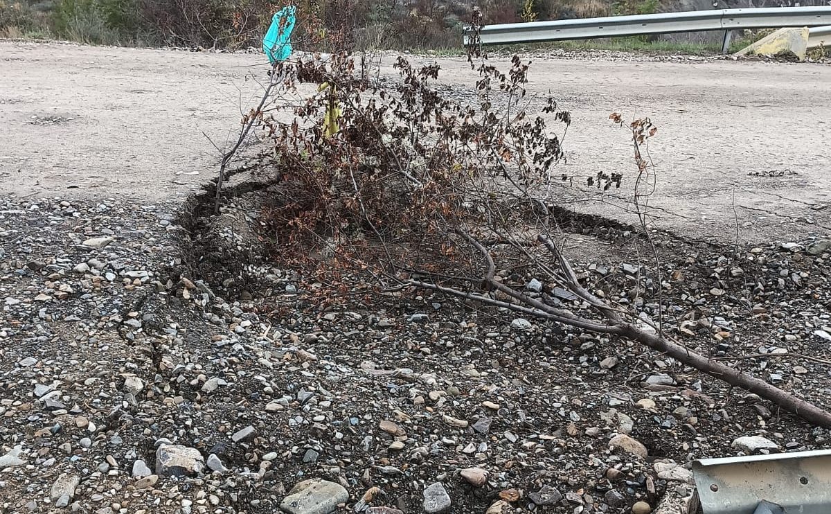 Este vorba despre un tronson pe care primele probleme au apărut în urmă cu câteva luni. Acum, însă, în urma ploilor, situația s-a agravat. Pământul s-a surpat în mijlocul drumului, lângă un pod, unde a apărut o groapă adâncă, ce prezintă risc de accidente.