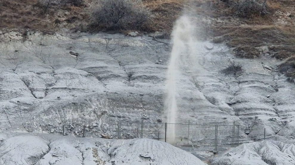 “E un fenomen care se întâmplă cu o frecvență de câțiva ani, 7-8 ani. Ideea este că ultima dată e rupt în 2023, este o surpriză faptul că a erupt din nou la așa scurt timp. Din ce am văzut, este apă cu noroi, ca la Vulcanii Noroioși dar, preventiv, au fost montate filtre textile în șanțul de scurgere, pe valea pe care se scurge materialul rezultat din erupție, în cazul în care ar apărea și vreo peliculă de hidrocarburi să rămână acolo, în acele filtre.”