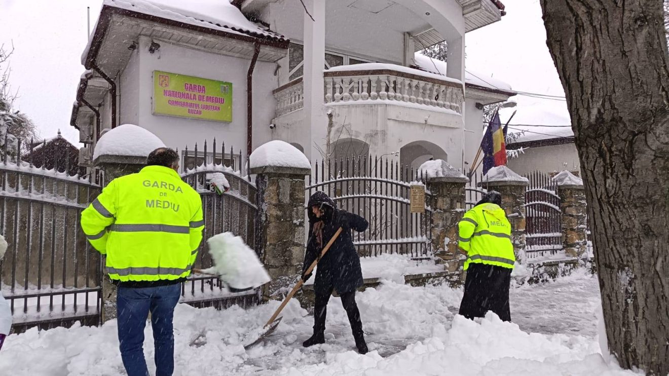 ”Echipati bine, inclusiv cu lopeti, au indepartat zapada de pe trotuarul din dreptul sediului GNM-CJ Buzau, dand astfel un exemplu si un indemn tuturor cetatenilor, inclusiv persoanelor juridice, sa indeparteze zapada de pe trotuarul din dreptul imobilelor pe care le detin sau le folosesc, conform prevederilor art.9 alin.(1) lit.h) din O.G. nr.21/2002 privind gospodarirea localitatilor urbane si rurale.”
