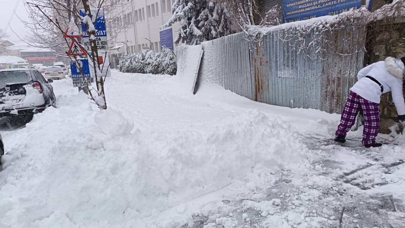 Stratul gros de zăpadă care a îmbrăcat tot orașul Buzău le-a dat serios de furcă tuturor locuitorilor, dar și celor aflați la vârful instituțiilor publice. Dimineață, s-a circulat greu atât pe străzi, cât și pe aleile dintre blocuri și pe trotuare. Iar societatea de salubrizare care are încredințat contractul de deszăpezire în oraș a anunțat că a scos 17 utilaje pentru a asigura, în principal, accesul mijloacelor de transport, dar și că se va acționa în forță după ce se va opri ninsoarea. (detalii AICI).