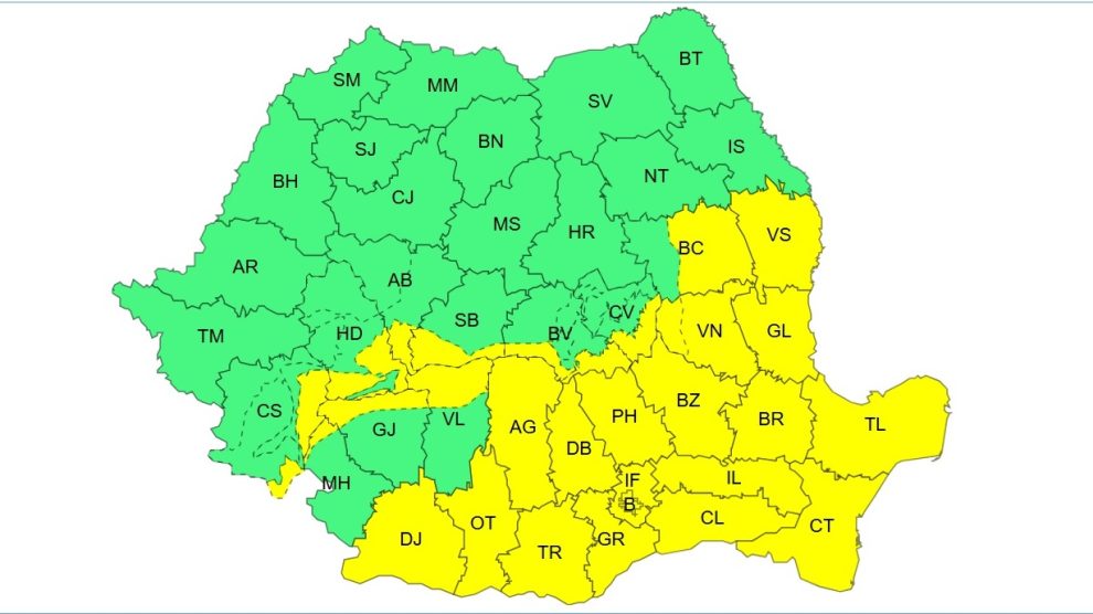 ”În sudul Olteniei, Muntenia, Dobrogea și sudul Moldovei vor fi precipitații însemnate cantitativ. Ziua vor fi precipitații mixte (ploaie, lapoviță, ninsoare) în Oltenia și Muntenia, ploi în Dobrogea și ninsori în Moldova. Noaptea vor predomina ninsorile. Se vor acumula cantități de precipitații de 25…30 l/mp și izolat de peste 40 l/mp. Se va depune strat de zăpadă în medie de 10…30 cm. Vântul va avea intensificări cu viteze la rafală de 50…70 km/h, va fi viscol și vizibilitatea redusă sub 100 m”, arată ANM.