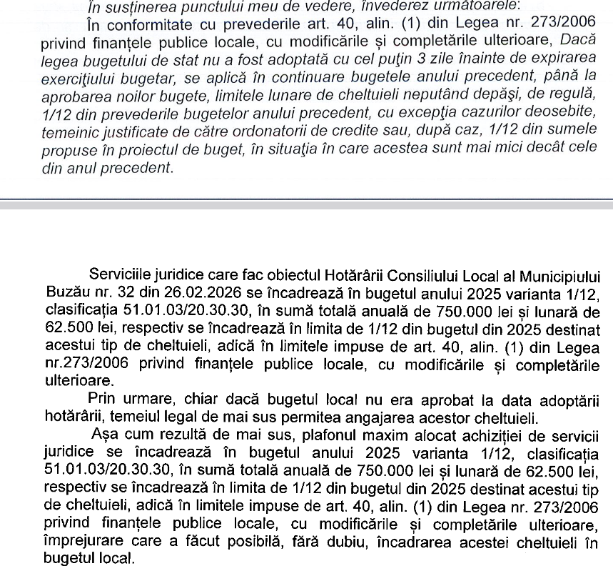 După analiza hotărârii adoptate în februarie, adoptată după dezbateri ample, cu votul majorității PSD, specialiștii Instituției Prefectului au identificat mai multe probleme. Printre acestea se numără faptul că serviciile juridice au fost contractate înainte de aprobarea bugetului pe anul în curs, dar și lipsa unei valori totale estimate pentru aceste cheltuieli. În acest context, Prefectura a transmis Consiliului Local solicitarea de anulare a hotărârii, stabilind ca termen limită data de 20 aprilie. Detalii, AICI.