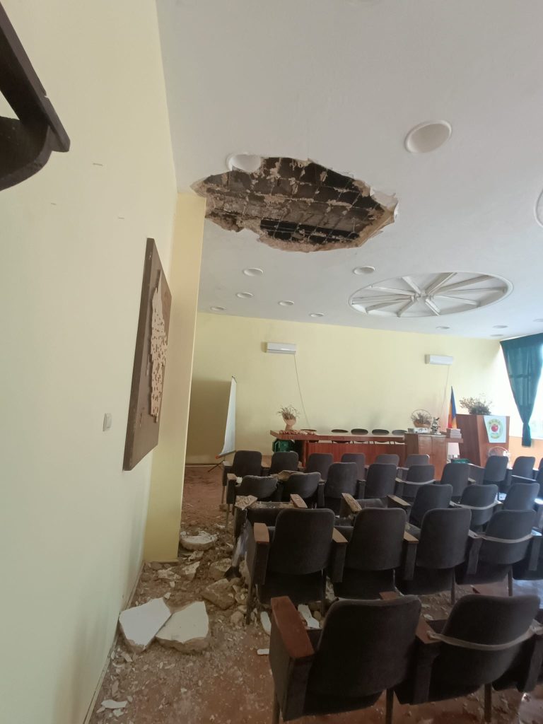Incident grav la Stațiunea de Cercetare-Dezvoltare pentru Legumicultură (S.C.D.L) Buzău, cunoscută publicului larg ca “Experimentala”, unde, zilele trecute, o bucată din tavanul sălii de conferințe a clădirii în care funcționează instituția s-a prăbușit brusc.