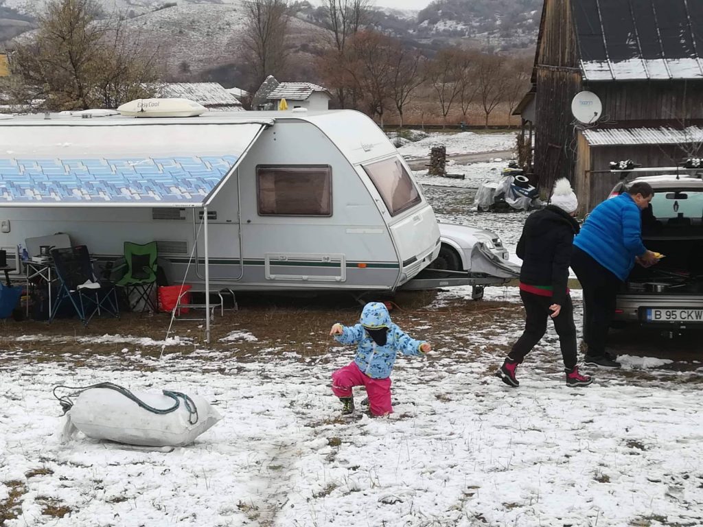 Prima zăpadă a fost un prilej de bucurie și pentru copii. Cei mai norocoși deja au făcut deja prima plimbare cu săniuța chiar dacă stratul de zăpadă așezat nu a fost unul foarte mare. Prima zi de iarnă a fost o adevărată bucurie pentru turiștii aflați în campingul de la Vulcanii Noroioși.