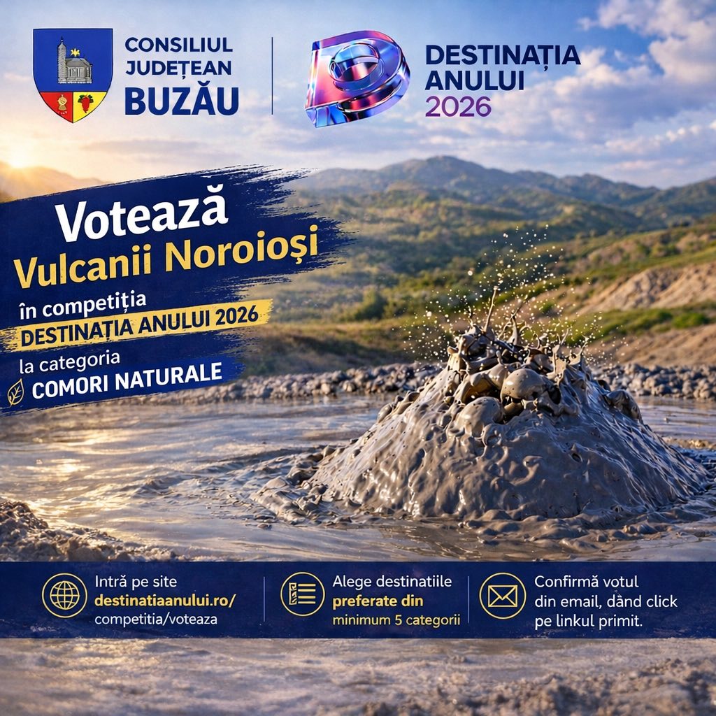 Atenție! Foarte important e ca la trei din cele cinci categorii votul să revină Buzăului, respectiv pentru Vulcanii Noroioși, Muzeul Chihlimbarului și Ținutul Buzăului.