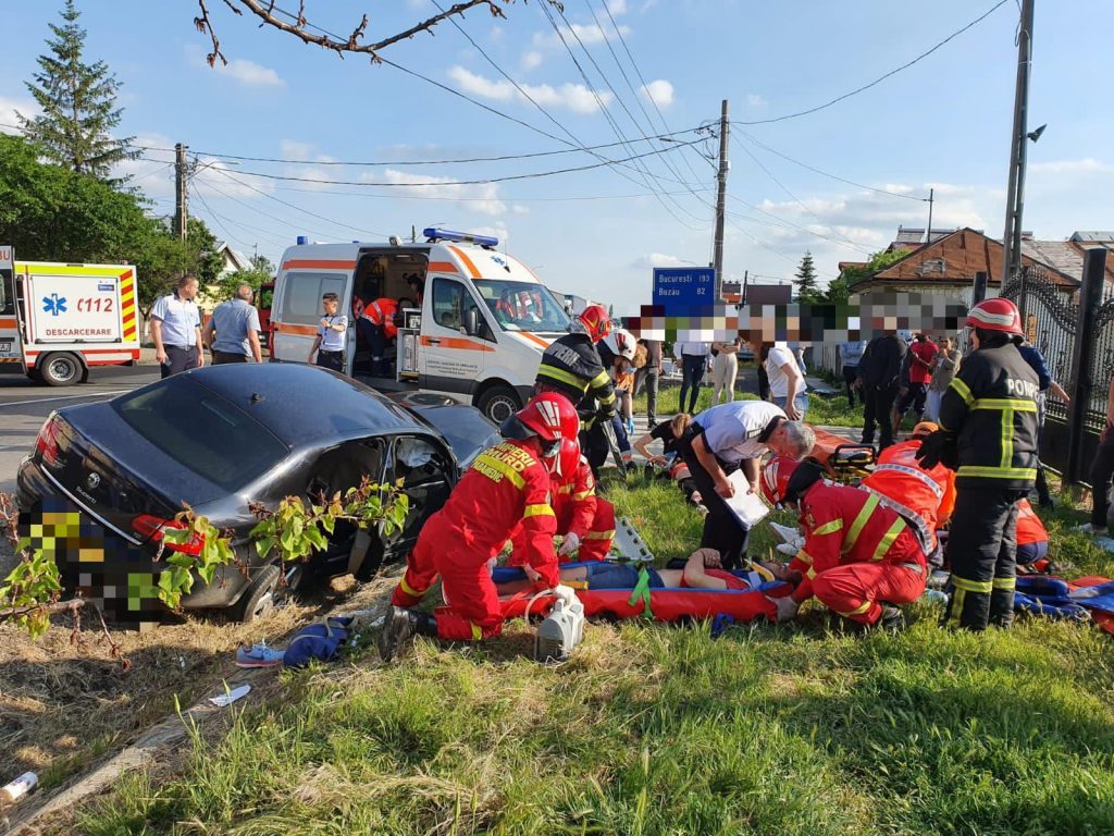 Skoda cu volan pe dreapta, implicată într-un grav accident în Vrancea. 4 tineri din Rm.Sărat, la spital în stare gravă (FOTO)