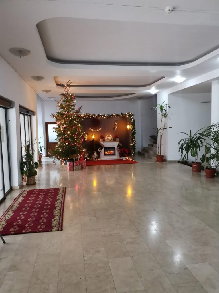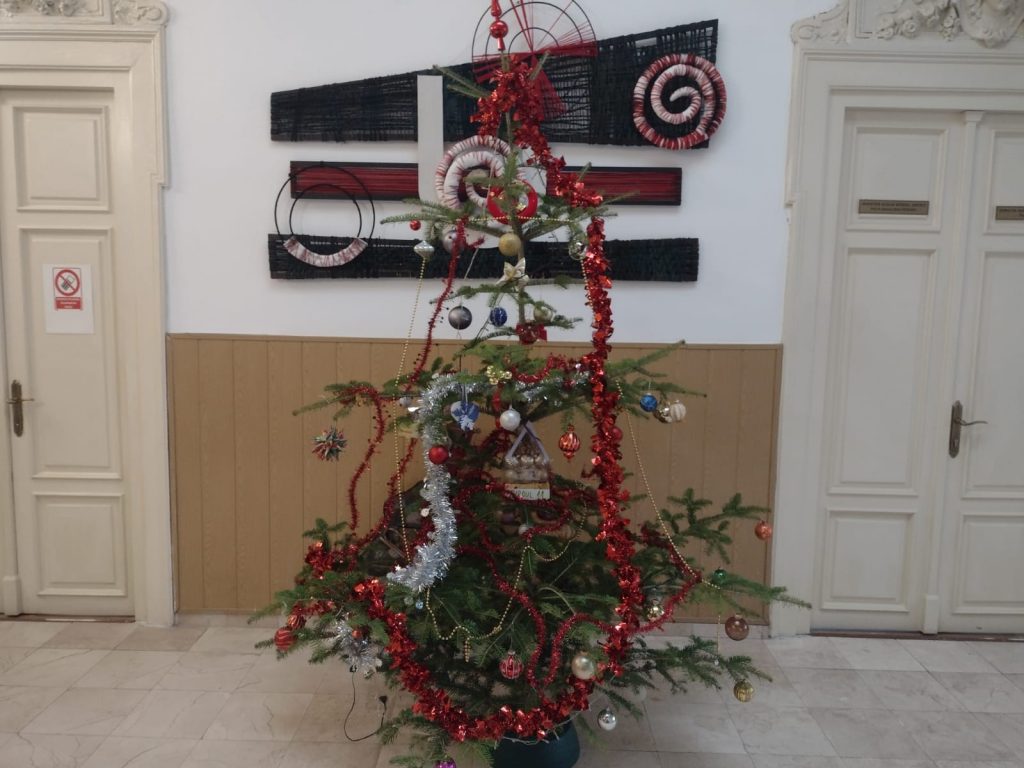 Funcționarii au ales și în acest an să împodobească un brad natural tocmai pentru a se simți aroma specifică sărbătorilor de iarnă. Atmosfera Crăciunului este redată și prin colindele care se aud tot timpul pe holul Primăriei.