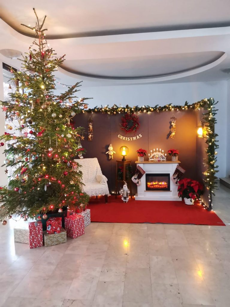 Consiliul Județean a mers pe un decor de poveste așa că pe lângă brazii împodobiți atât în fața sălii în care sunt organizate ședințele de consiliu cât și la intrarea în instituție, funcționarii, cu acordul președintelui Petre Emanoil Neagu, au amenajat Colțul lui Moș Crăciun din care nu lipsesc bradul, un șemineu alb și multe ghirlande luminoase.