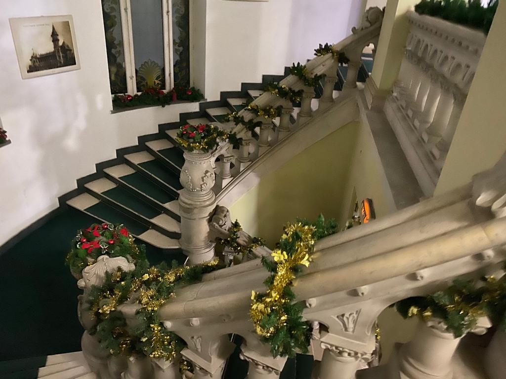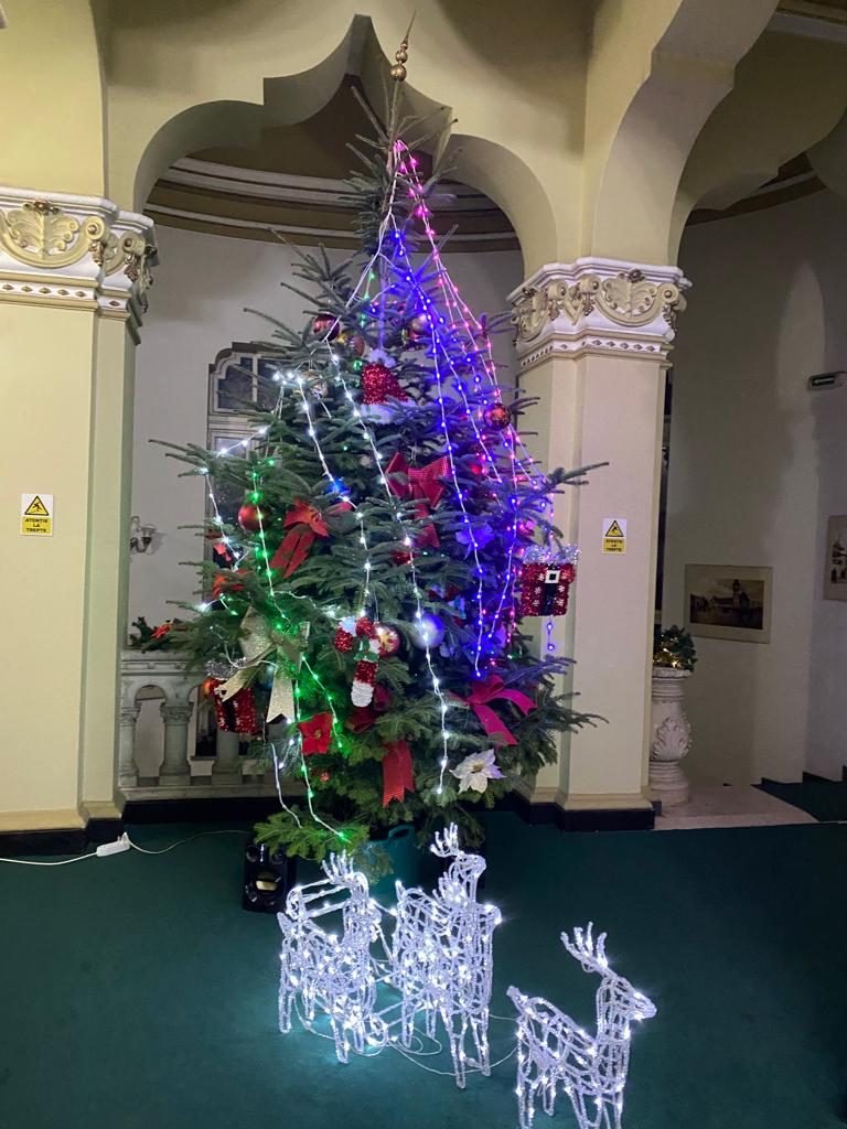 Potrivit primarului Constantin Toma s-au folosit vechile ornamente la care au fost adăugate altele noi, aduse de unii dintre angajați. Din decorul de sărbătoare nu lipsesc nici ghirlandele care împodobesc scara și nici sania trasă de reni.