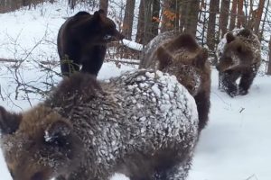 Un urs, o ciută și puii ei năzdrăvani sunt personajele unor filmări rare surprinse de angajații Romsilva, în apropiere de Buzău. Acțiunea, demnă de Cartea...