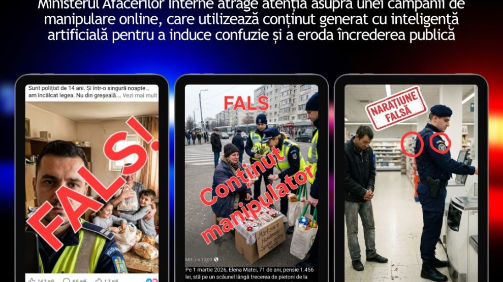 Zilele trecută, de pildă, o postare de pe rețelele sociale a devenit viral. Jandarmeria Română a demontat povestea, în care se susținea că ”un tată care a sustras dintr-un magazin lapte pentru copilul lui a fost iertat de jandarm”, cel din urmă plătind chiar el produsele. În realitate, autoritățile avertizează că aceasta este o dezinformare grosolană: furtul rămâne o infracțiune care nu poate fi ignorată de un om al legii, indiferent de motiv. Mai mult, la o privire atentă, ”uniforma” jandarmului din poze prezintă detalii bizare, iar literele de pe cutia de lapte sunt complet ilizibile, semne clare că imaginea a fost realizată cu ajutorul Inteligenței Artificiale tocmai pentru a genera distribuiri masive prin manipulare emoțională.