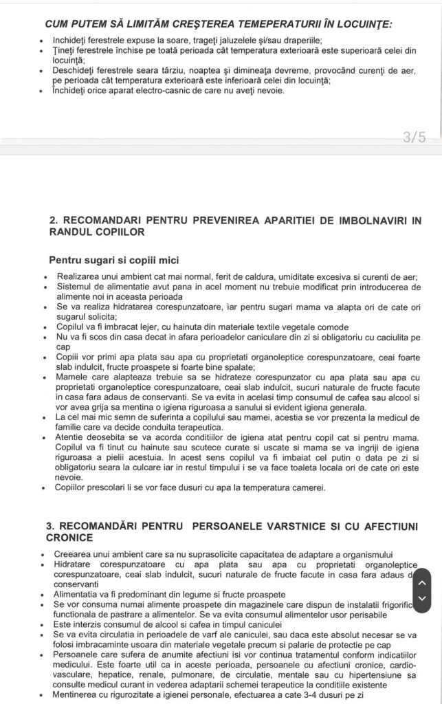 De asemenea, medicii recomandă o atenție deosebită anumitor categorii de vârstă considerate vulnerabile la expunerea îndelungată la căldura ridicată. Este vorba despre copii, vârstnici și persoanele cu dizabilități sau cu afecțiuni cardiace.