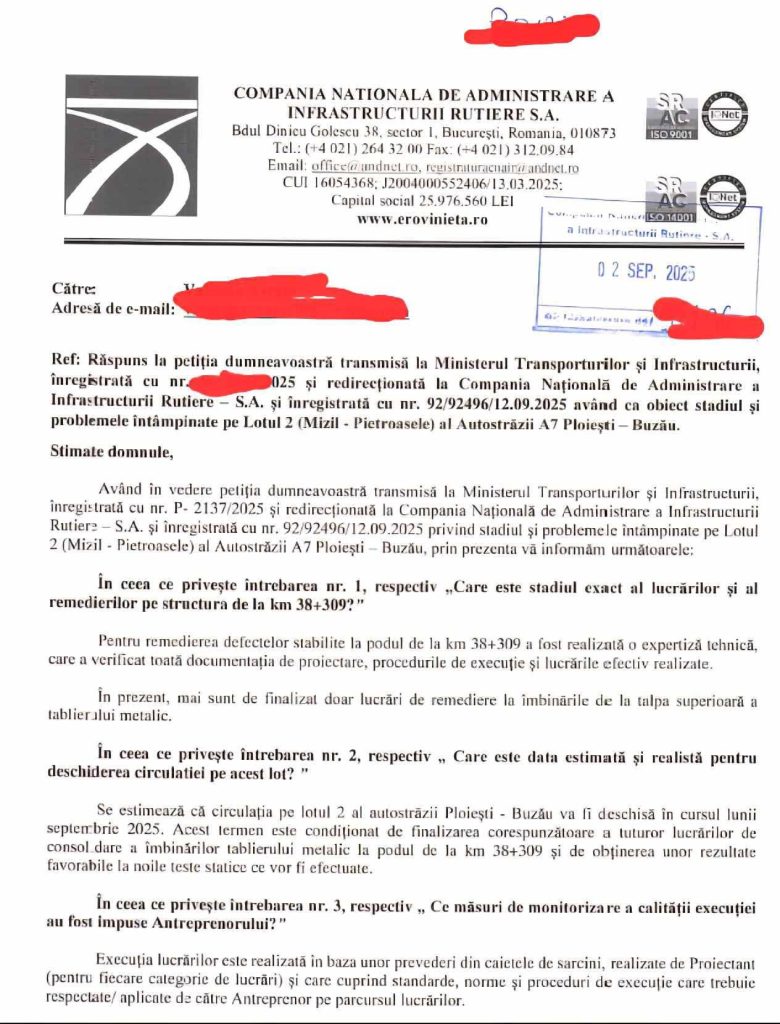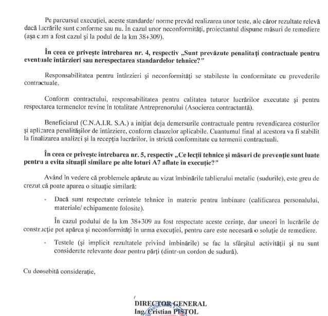 Pe de altă parte, CNAIR transmite că firma bulgară va plăti daune și penalități de întîrziere pentru toată această situație, care a dus la întârzierea deschiderii lotului 2.