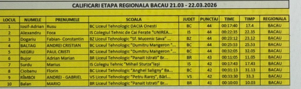 Etapa regională va avea loc în perioada 21-22 martie la Bacău. Acolo, Fabian se va măsura cu cei mai buni 30 de tineri mecanici din țară, selectați dintr-un total de peste 1000 înscriși, luptând pentru un loc în finala națională și, ulterior, în cea internațională.