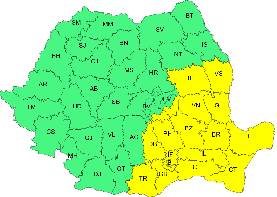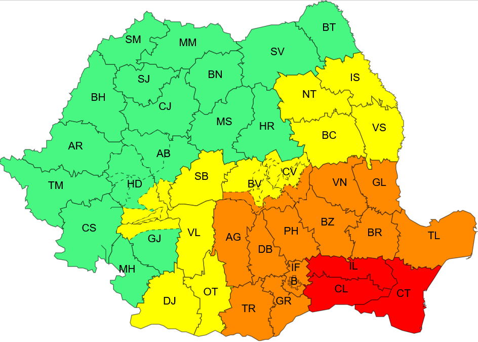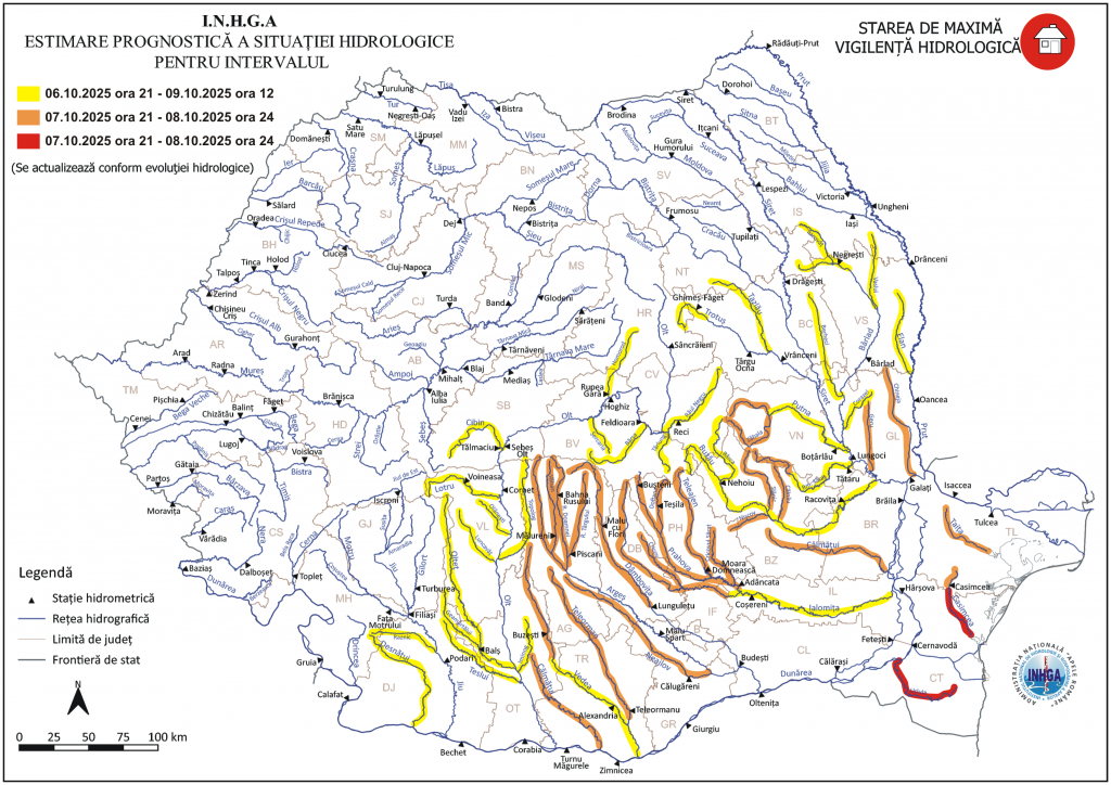 Va ploua torential, ore bune, ceea ce înseamnă risc crescut de revărsare a apelor. Hidrologii au emis astăzi mai multe avertizări de inundații. 500 de angajați și 100 de utilaje ale Apelor Române din administrațiile bazinale Buzău-Ialomița, Dobrogea-Litoral, Siret, Prut-Bârlad, Argeș-Vedea, Olt și Jiu sunt pregătite să intervină, alături de echipele Inspectoratul General pentru Situații de Urgență.